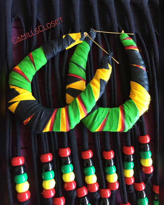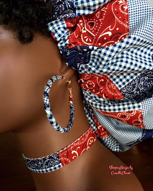Blue/Yellow Kente Bamboos & Doorknocker Earrings