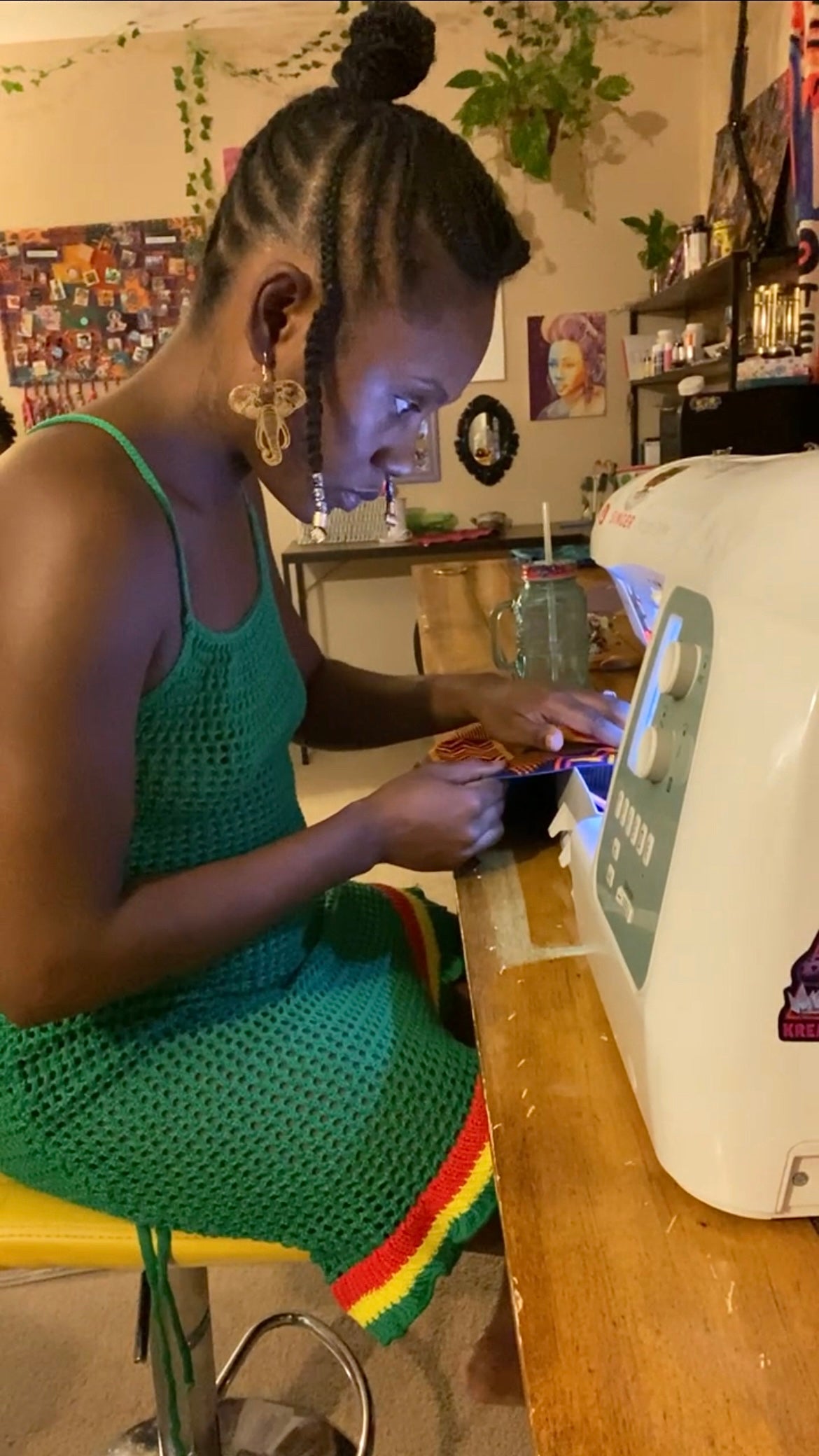 In 2014, Camill’s journey took a divine turn. A relative gifted her a massive bag of fabric—filled with bold patterns and African prints—but much of it wasn’t suitable for blankets. As a single mother navigating financial struggles, she found herself sitting with this overwhelming bag of fabric, searching for answers.
