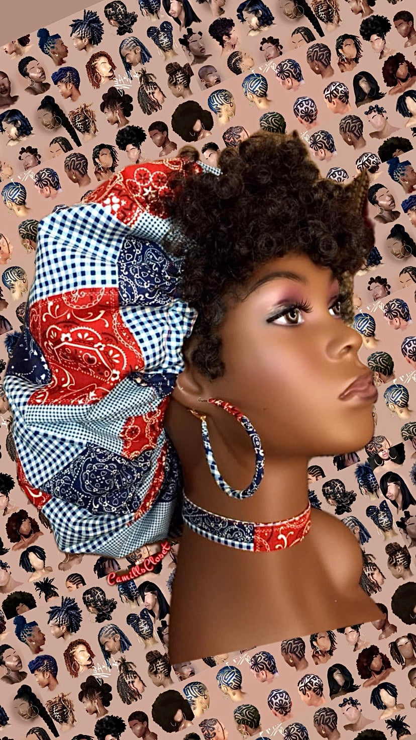 Blue & Red Bandana Bonnets